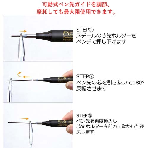 【特長】●ペン先が2.0mmと細長いので、狭く入り組んだ場所にも書き込めます。