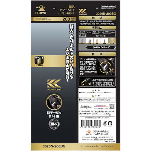 | 商品名 | フジ矢 偏心パワーペンチ(バリ処理機能付き・黒金) 3020N-200BG |