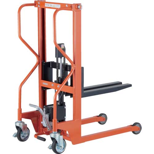 ●狭い通路でも簡単操作、場所をとらない足踏み式のリフターです。
