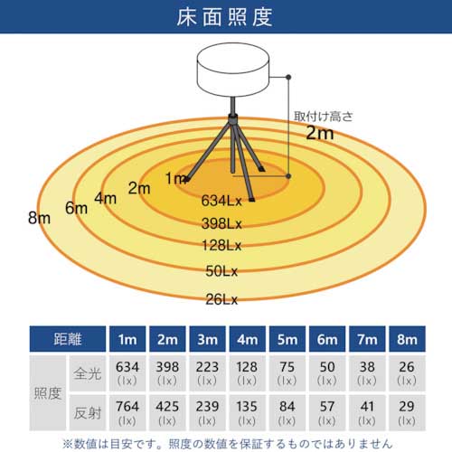 ●上部への光を反射し、足元(周囲3m程度)をより明るく照らせます。
