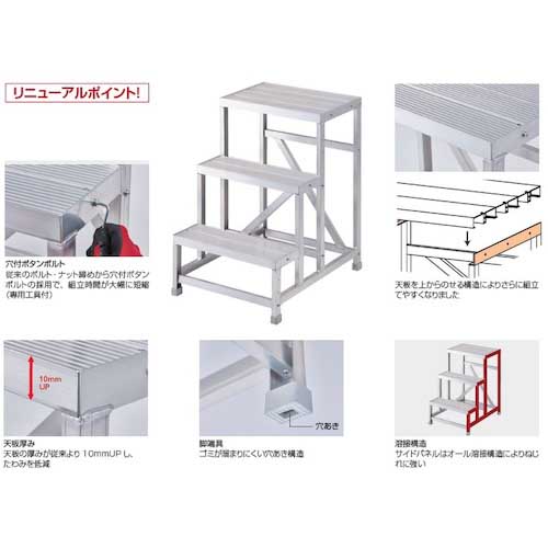 ●天板はアルミ縞板を使用しすべり止め効果に優れています。