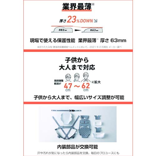 ●厚生労働省の保護帽の規格「飛来・落下物用・墜落時保護用」の国家検定を取得ています。