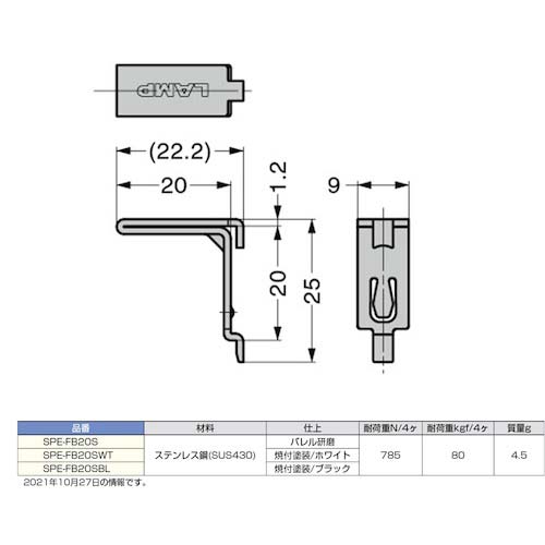 | 商品名 | SUGATSUNE (120020903)SPE-FB20Sステンレス鋼製棚受 SPE-FB20S |