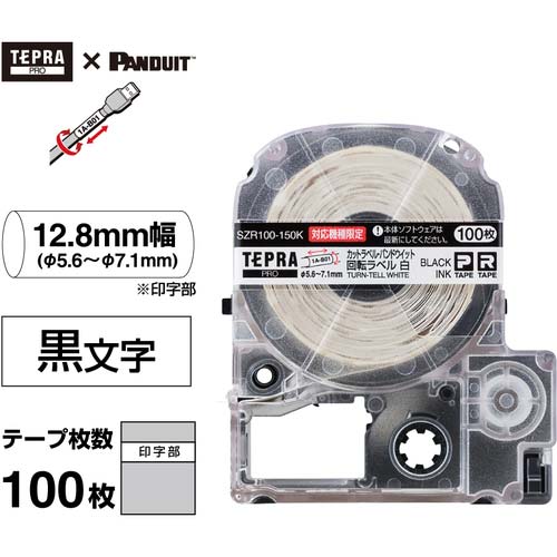 KING JIM 【純正】「テプラ」PROテープ カットラベル・パンドウィット/回転ラベル/白ラベル/黒文字 対応ケーブル径Φ5.6〜7.1mm SZR100-150K