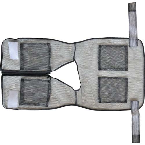 【特長】●夏場は保冷剤、冬場はカイロ入れに便利な大サイズのポケットがベストの前後についています。