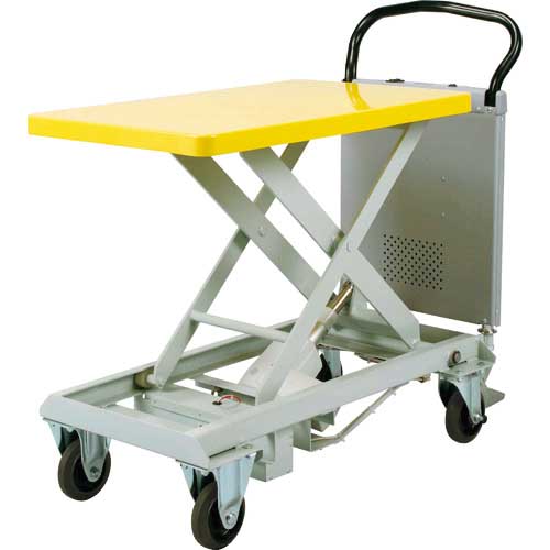【特長】●油圧を使用していない電動リニア式リフト台車です。