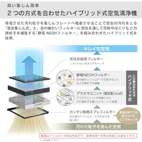 ●フィルター式と電気集塵式のいいところどりのハイブリッド式です。