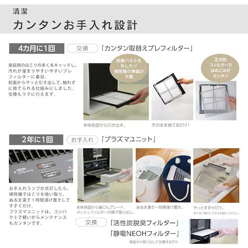 ●別売フィルター:活性炭脱臭フィルターC290602、静電NEOHフィルターC370311、カンタン取替えプレフィルターC070301