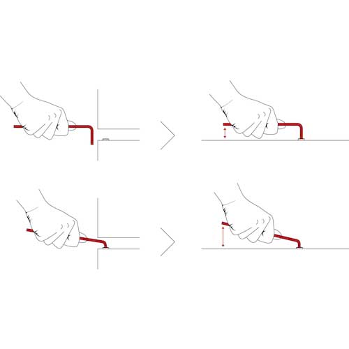 ●極めて短いヘッドの長さと100°のアングルにより、今までアクセスできなかったネジをまわす事ができます。