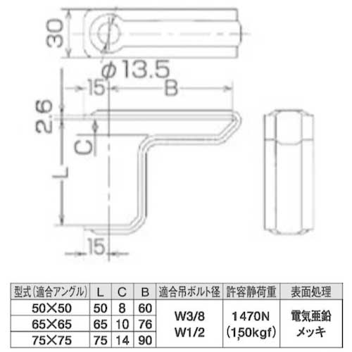 DAIDOHANT 吊り金具 [適合アングル 50×50] (L型アングル) (L)50×(B)60mm 10177072