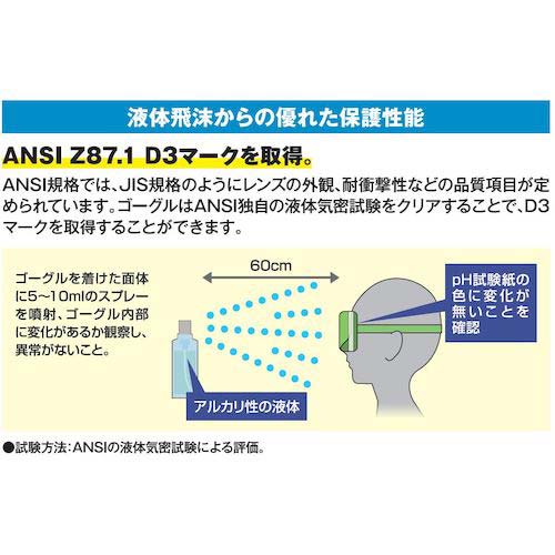 ●液滴および飛沫から保護するANSI Z87.1 D3マーク取得品です。