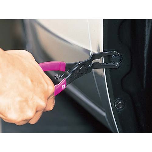 【特長】●自動車のフロント・リアバンパー、フロントフェンダーライナー等に使用されている樹脂製クリップの取り外し及び装着時の軸部の縮め・挿入が容易に行えます