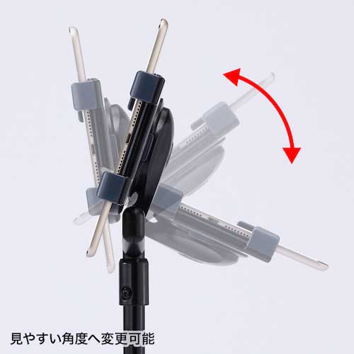 ●iPad・タブレットをホルダーに取り付けたままで縦、横の回転ができます(360°回転)