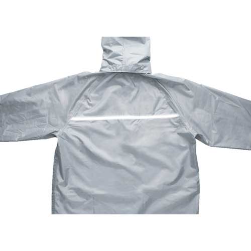 【特長】●上着は、水の侵入を防ぐ前たて、手袋使用時に便利な2重袖、収納に便利な左胸ポケット、視認性の良い透明フード、背中に反射テープ付の多機能合羽です。