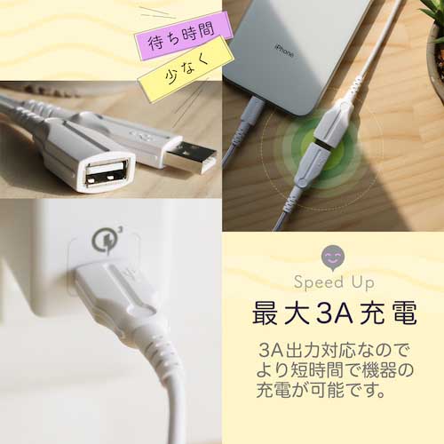●最大3Aの充電とUSB 2.0 モードのデータ通信に対応してます。