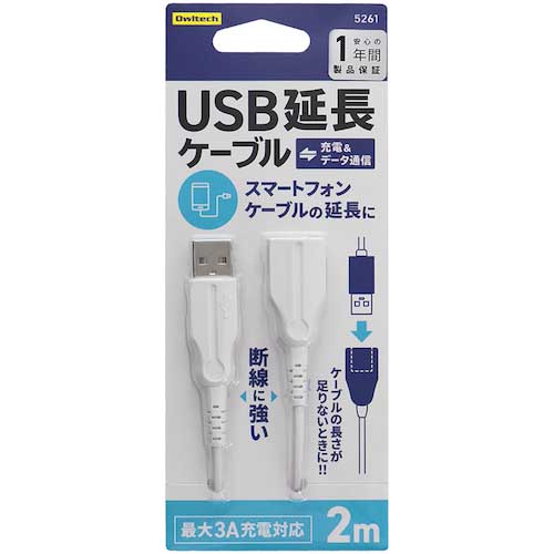 | 商品名 | Owltech 手持ちのUSBケーブルを手軽に延長 断線に強いUSB延長ケーブル OWL-CBKE20-WH |