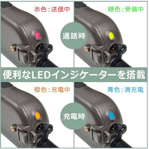 ●すぐに使える2台セットで、専用バッテリー、充電ケーブルに充電用ACアダプター、ベルトクリップ、ネックストラップも各2個ずつ付属しています(イヤホンマイクは別売です)。