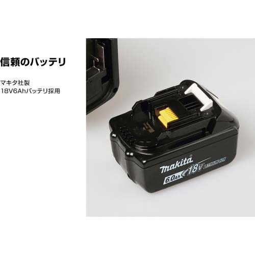【注意】●バッテリー、充電器は別売りです。バッテリーはマキタBL1860B、充電器はマキタDC18RFをご利用ください。