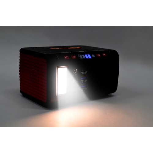 ●電池残量が一目でわかるLEDインジケーターと2灯式LEDライト、ランタンの2種類の照明がついています。