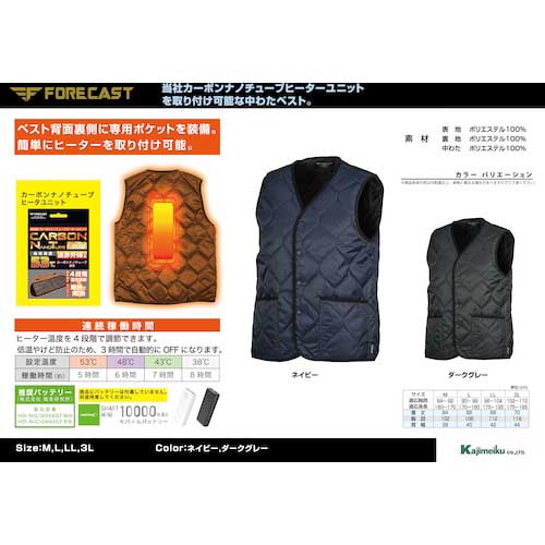 【廃番】カジメイク カーボンナノチューブヒーターベスト ダークグレー M 8282-75-M