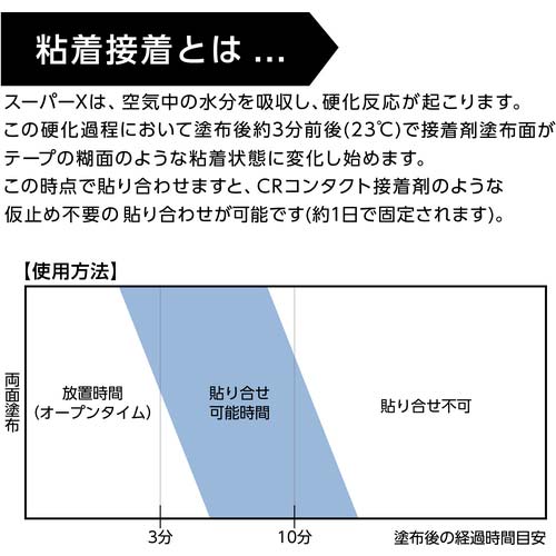 【特長】●粘着接着・一液・無溶剤・常温速硬化の接着剤です。