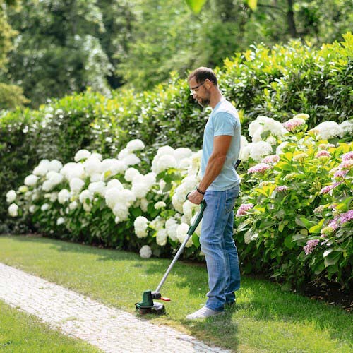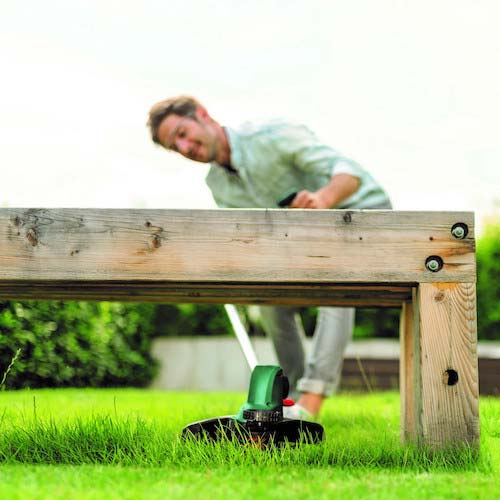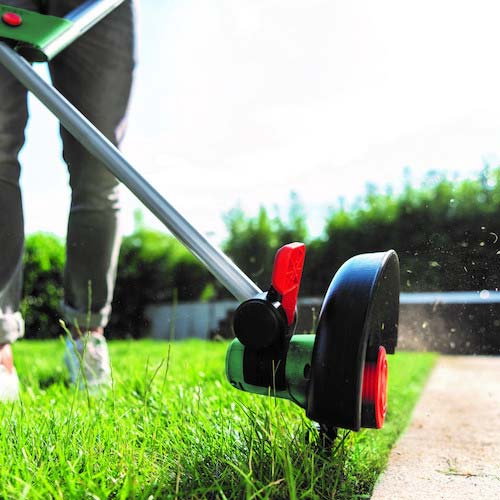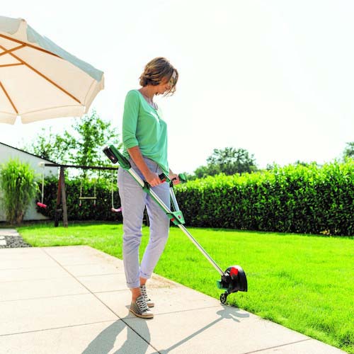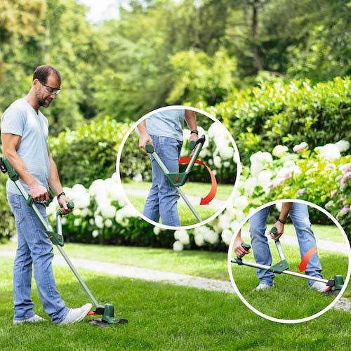 ●キワ刈り・平面両方対応のヘッド角度調整機能付、フットペダルによる操作で簡単に最適な角度へ調整できます。