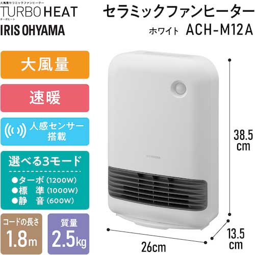 | 商品名 | 【廃番】アイリスオーヤマ 296270 大風量セラミックファンヒーター ホワイト ACH-M12A-W |