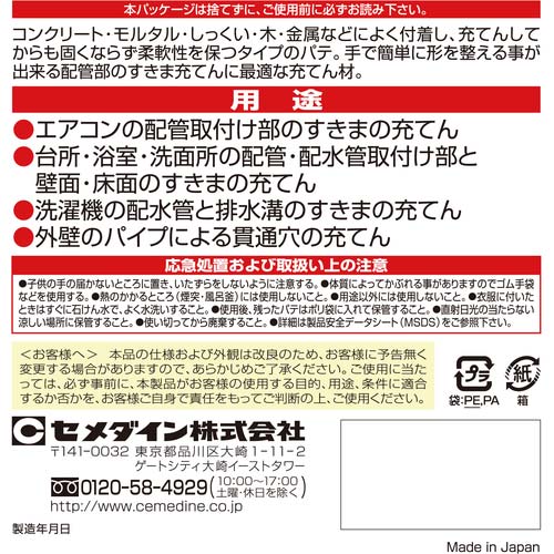 【用途】●エアコンや流し台の配管すきま充てんに。