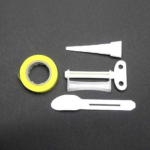 ●マスキングテープ・ヘラ・ノズル・絞り器がセットになっているので、これ1つで補修できます。