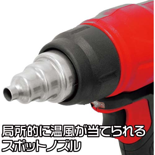 【特長】●500℃の熱風を吹き出して様々な用途に使用可能な充電式ヒートガンです。