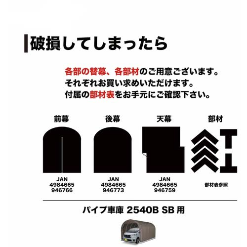 | 商品名 | 南榮工業 パイプ車庫(ベース式)2540B SB 2540BSB |