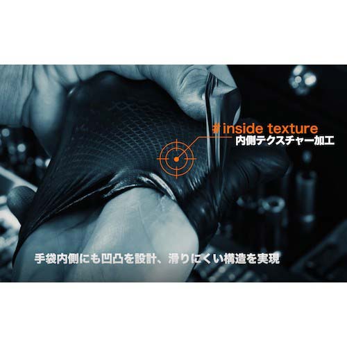 ●通常の薄手ニトリルゴム手袋の1.5倍以上の強度です。