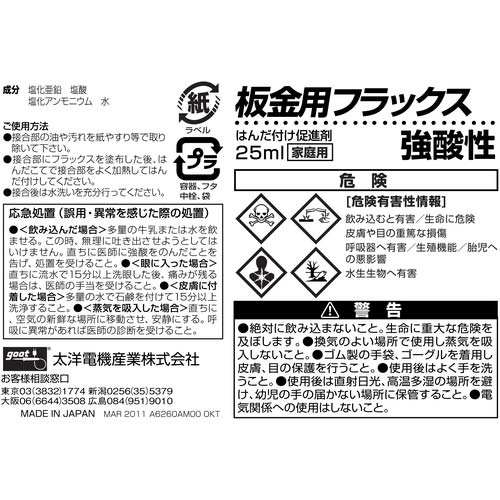 【用途】●銅・真鍮・ブリキ板のはんだ付けに。