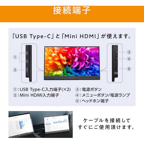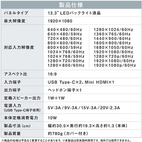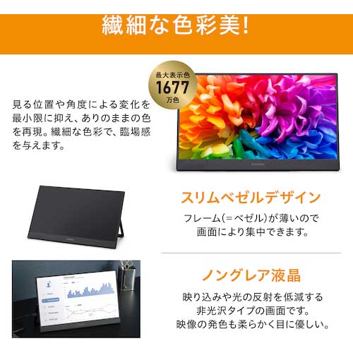 【特長】●仕事で大活躍!テレワークや出張にも便利なポータブルモニターです。