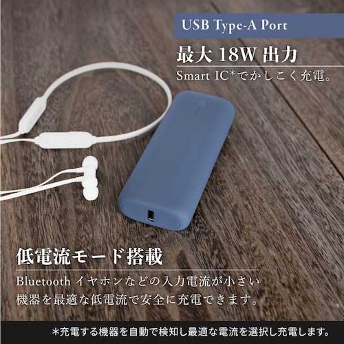 ●USB Type-Aポートからの充電時、Bluetoothイヤホンなどの入力電流が小さい機器を最適な低電流で安全に充電できる機能を搭載しています。