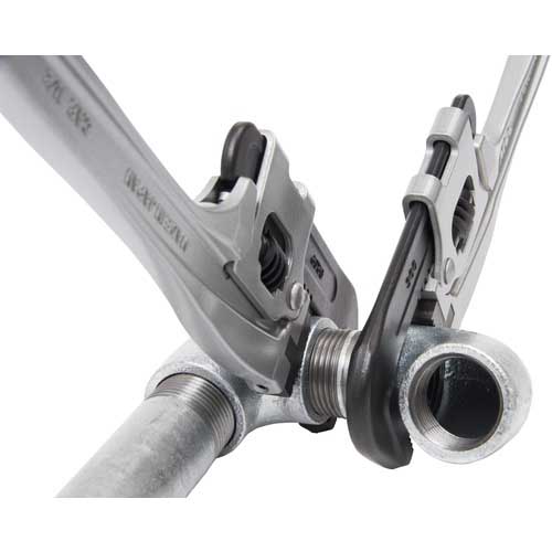 ●溝中、壁際、天井等の狭所はもちろん、短ニップルやエルボ継手などの掴み代の狭い継手の締付、エルボ返し等あらゆる現場で大活躍します。