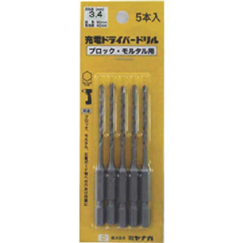 | 商品名 | ミヤナガ 充電ドライバ-ドリル(ブロック・モルタル用) Φ3.4 5本パック R034P5 |