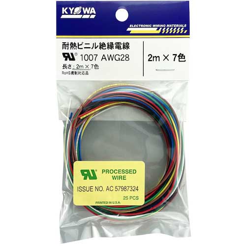 KYОWA UL耐熱ビニル絶縁電線 UL1007 AWG28 2MX7色 2M X 7