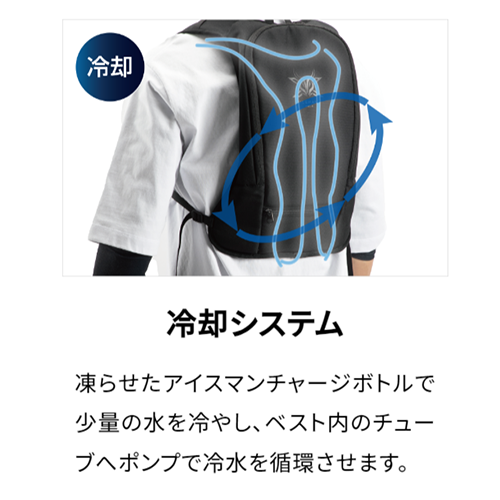 【特長】●凍らせた専用チャージボトルで体を冷やします。
