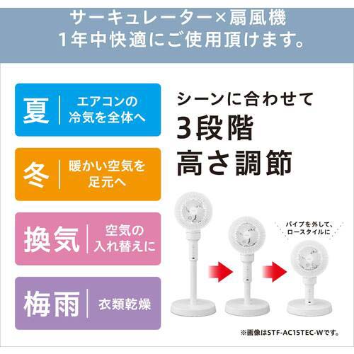 アイリスオーヤマ 299948 サーキュレーター扇風機 ACスタンドファン マイコン式 ホワイト STF-AC15TEC-W
