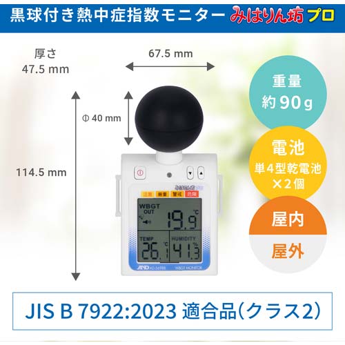 | 商品名 | A&D 黒球付熱中症計 みはりん坊プロ<熱中症指数モニター> AD-5698B |