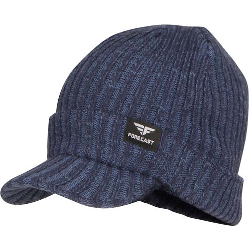 ●アクリルでふっくらと編み上げた、つば付きタイプのニット帽です。