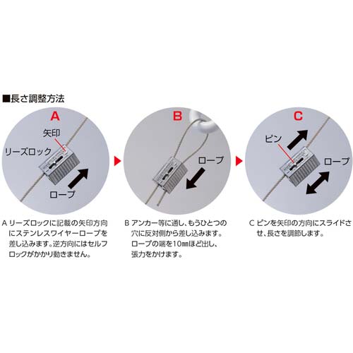 【特長】●専用工具不要でワイヤーロープの長さ調整、固定が簡単にできます。