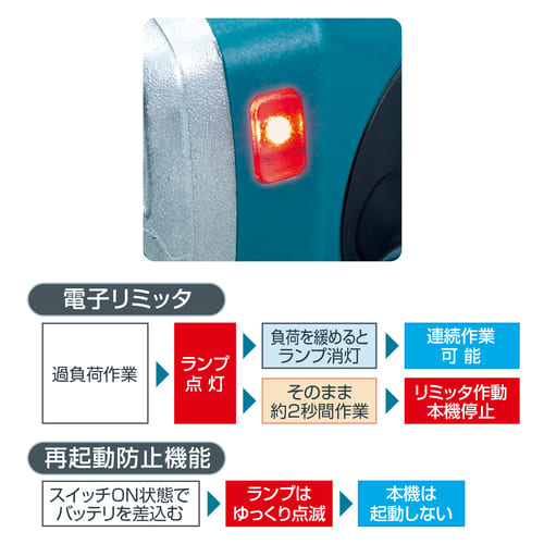 ●過負荷時に点灯するランプを目安に、モータを保護しながら連続作業が可能です。