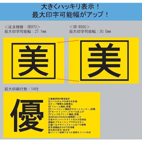 ●従来機種(SR970)に比べて最大印字可能幅が30.5mmになり、最大で14行の多行印刷も可能です。