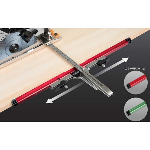 商品名 【廃番】シンワ 丸のこガイド定規Tスライドスリムシフト2ロング突き当て 30cm赤緑限定色 79901