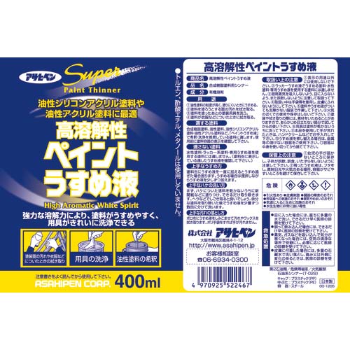 | 商品名 | アサヒペン 高溶解性ペイントうすめ液 400ML 522467 |