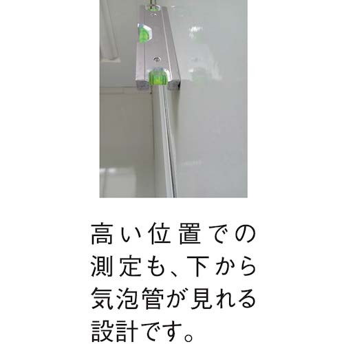 ●二連縦気泡管を採用し、上からも下からも垂直確認ができます。