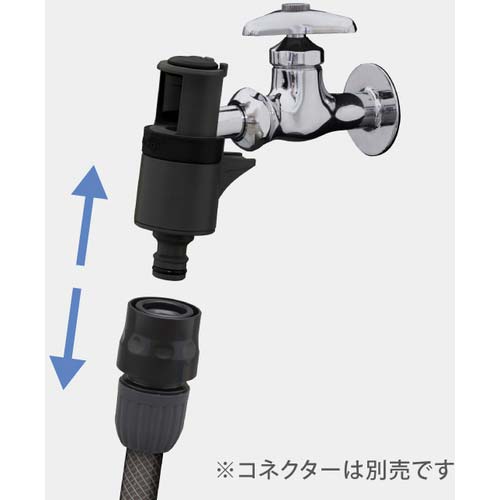 ●蛇口外径14〜18mmの横水栓、万能ホーム水栓に取り付けることでホースを接続するコネクターとワンタッチ接続ができます。