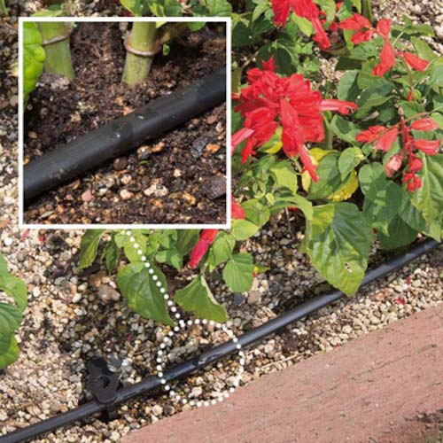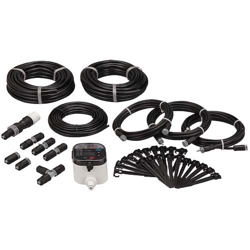 ●蛇口に取り付けて時間設定など簡単な操作をするだけで自動で水やりできるタイマーと、花壇や家庭菜園などに最適なアイテムを揃えたスターターキットです。